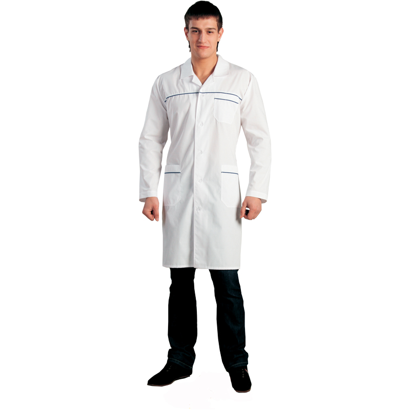 Халат Мод 87 белый с синим кантом, тк."ТС" мужской (ЧЗ)