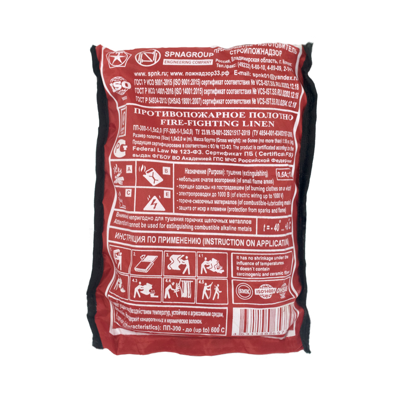 Полотно противопожарное ПП-300-1 (1,5х2) в чехле-сумке из водонепроницаемой ткани